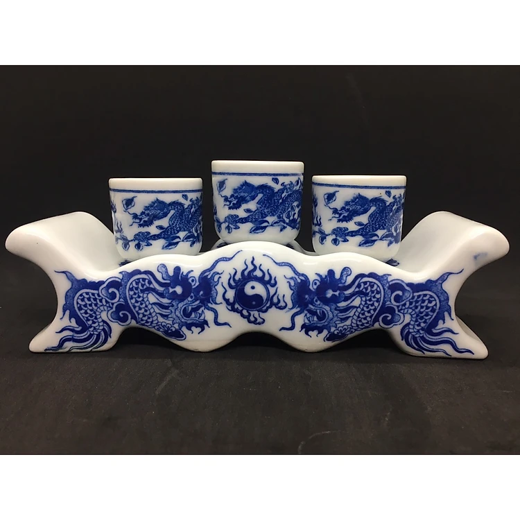 Khay nước 3 ly rồng xanh mẫu khay ngai ( gốm sứ bát tràng cao cấp)