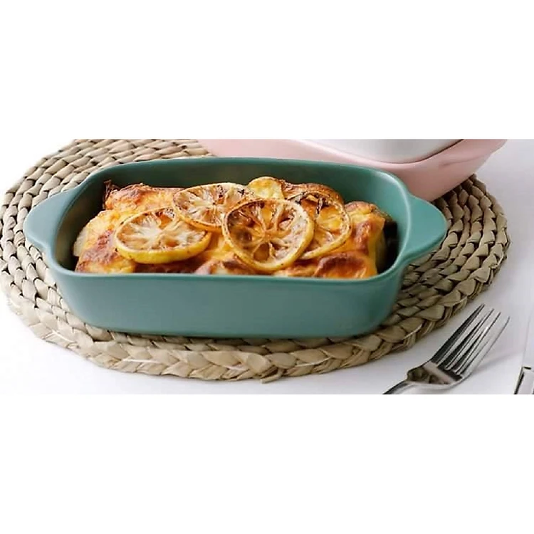 Khay nướng bánh bằng sứ hình chữ nhật màu xanh 23,5 cm (1 chiếc)