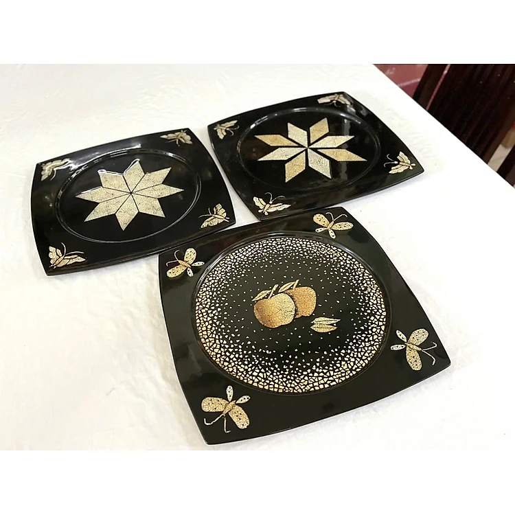 Dĩa sơn mài cao cấp Thanh Bình Lê cẩn trứng đẹp, hàng xuất khẩu 30x30 cm