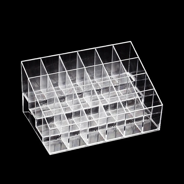 Khay được chia làm 24 ô đều nhau với thích hợp chuyên đựng son môi, nhũ tay và các loại phụ kiện mỹ phẩm khác rất thích hợp với các bạn nữ có nhiều son môi và các shop bán đồ mỹ phẩm cần sử dụng khay để trưng bày.