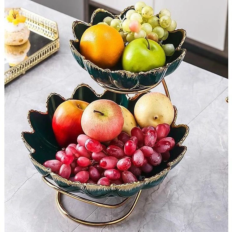 KHAY SỨ ĐỰNG BÁNH KẸO HOA QUẢ 2 TẦNG HOA SEN