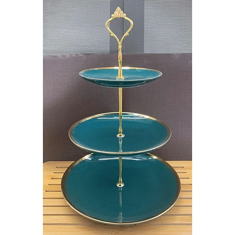KHAY SỨ ĐỰNG BÁNH KẸO HOA QUẢ 3 TẦNG TRÒN TRƠN VIỀN VÀNG