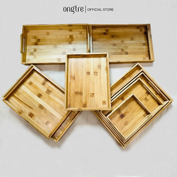 Khay trà bằng tre công nghiệp hình chữ nhật có tay cầm, khay tre phục vụ nhà hàng, khách sạn | ongtre