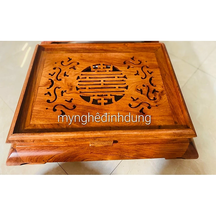 Khay trà chè cung đình để bộ ấm chén bằng gỗ hương kt 26x36x12cm