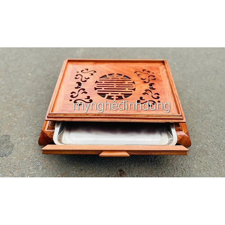 Khay trà cung đình bắng gỗ hương kt 47x37x15cm