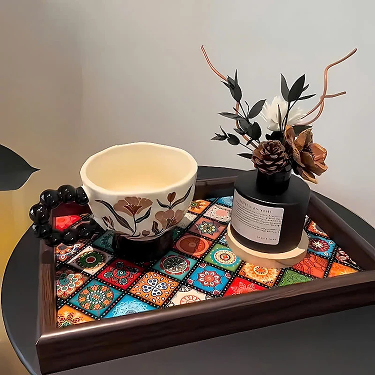 Khay Trà Gỗ Họa Tiết Mosaic Phong Cách Bohemian 30×20cm | Khay Đựng Ly Cốc Cao Cấp | Khay Decor Trang Trí Nhà Cửa - HÀNG CHÍNH HÃNG MINIIN