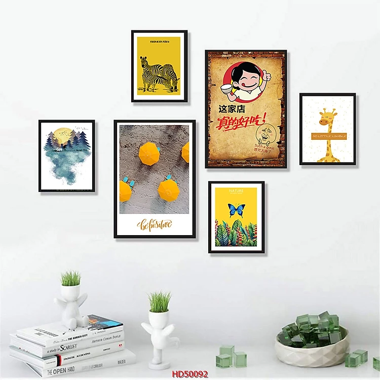 [KHỔ LỚN] SET 6 Tranh Laminate Tráng Gương - Tranh Treo Tường Phong Cách Bắc Âu - Scandinavian Sắc Vàng