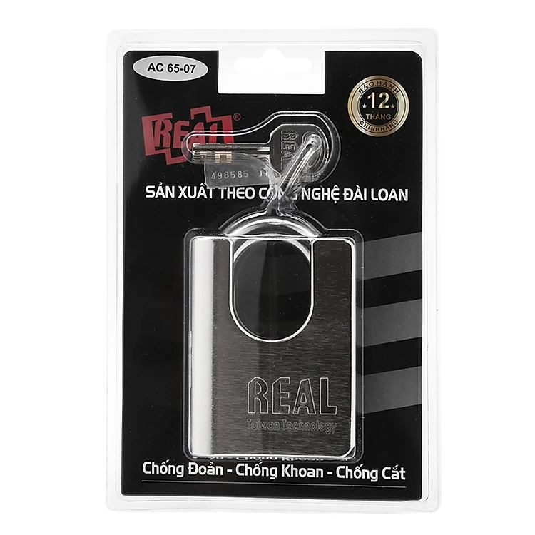 - Khóa Chống Cắt 65mm Real AC 65-07 có cơ cấu hoạt động khá đơn giản, dựa trên sự chuyển động ăn khớp giữa các bi chốt (các lẫy nhỏ bên trong ổ khóa) với các rãnh hốc trên chìa khóa.