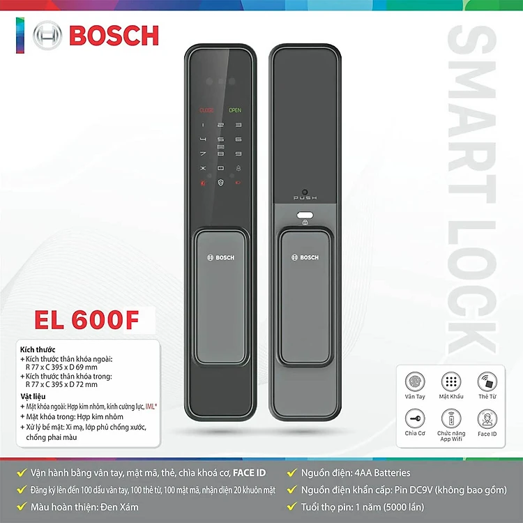 Khóa Cửa Face ID Điện Tử - Nhận Diện Khuôn Mặt - Bosch EL 600B (C) EU - Chính Hãng
