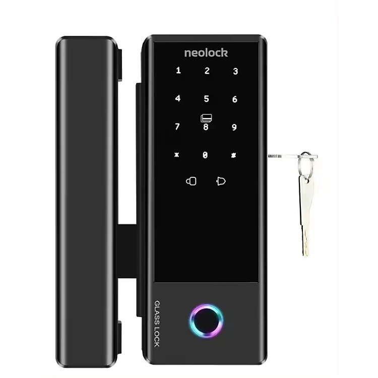 Khóa cửa kính thông minh qua APP, vân tay, thẻ từ, cấp mã từ xa cho văn phòng, showroom neolock neoA6S