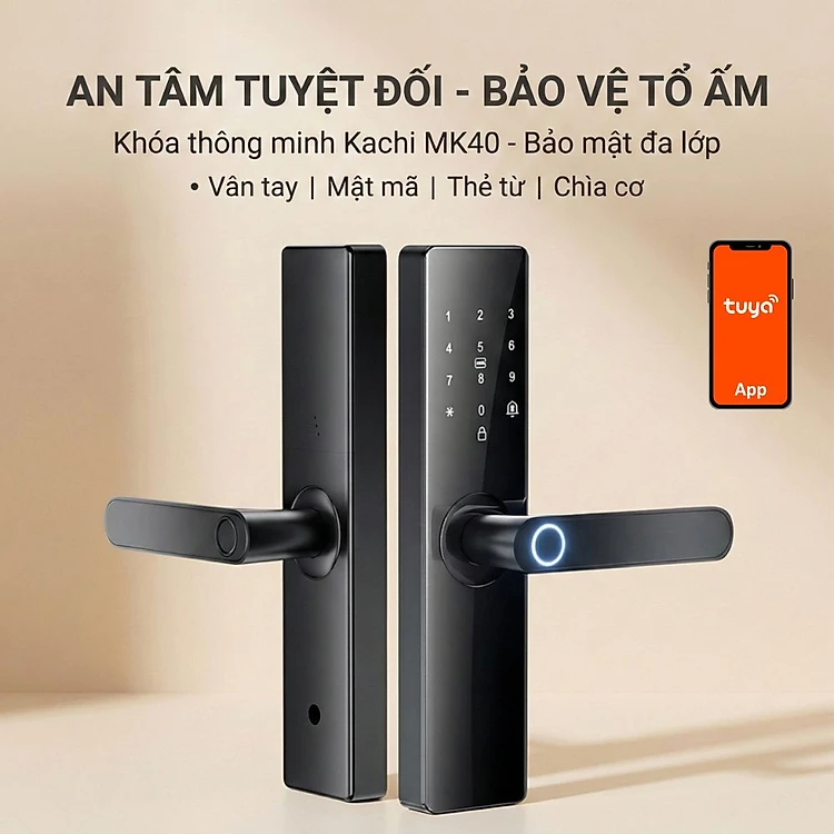 Khóa Cửa Thông Minh Kachi MK40 – Mở Khóa App Tuya + Vân tay + Chìa khóa + Thẻ từ + Mã số - hàng chính hãng