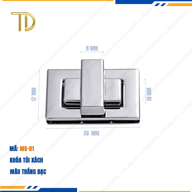 Khóa gài túi xách, Khóa xoay túi xách, Khóa kim loại hình chữ nhật túi xách mạ điện độ bền 5-8 năm