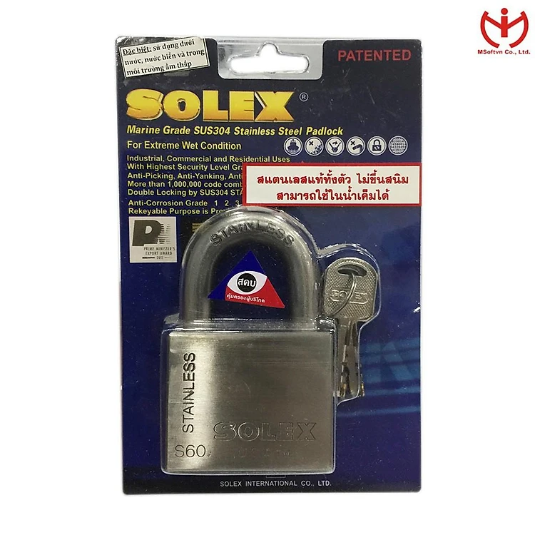 Khóa Solex S60 inox SUS 304 thân rộng 61mm - MSOFT