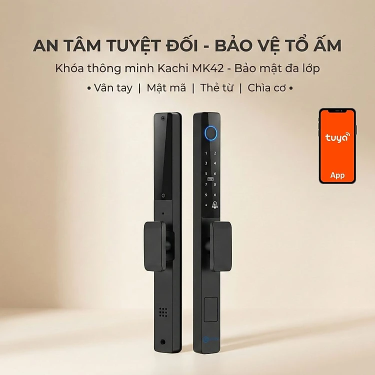 Khóa Thông Minh Kachi MK42 - Chuyên Dụng Cửa Nhôm Xingfa, Cửa Kính | Mở Khóa Qua App Tuya, Vân Tay, Thẻ Từ | Chống Nước IP65 - hàng chính hãng