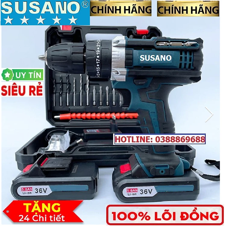 MÁY KHOAN PIN CAO CÁP SUSANO 36V + TẶNG BỘ PHỤ KIỆN 24 MÓN