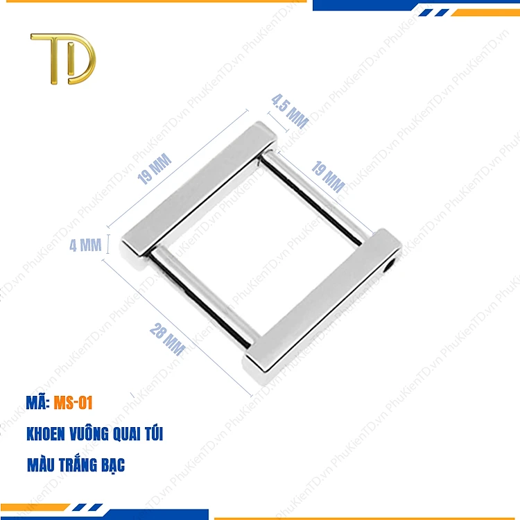 Khoen vuông gắn túi xách, Khoen chữ nhật gắn túi xách 19mm công nghệ mạ điện độ bền 5-8 năm