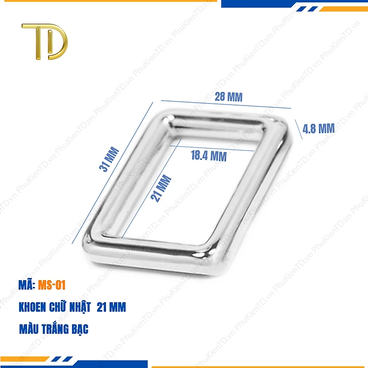 Khoen vuông túi xách, khoen chữ nhật túi xách 21mm cao cấp công nghệ mạ điện độ bền 5-8 năm