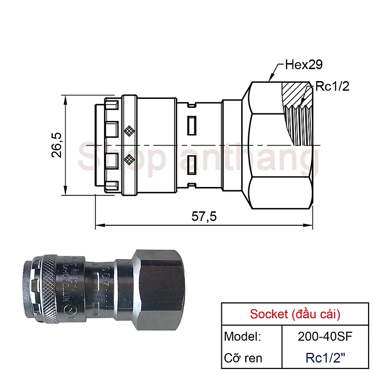 Khớp nối nhanh khí nén một chạm 200-SF, Nitto - Nhật Bản