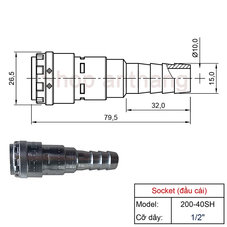 Khớp nối nhanh khí nén một chạm 200-SH, Nitto - Nhật Bản