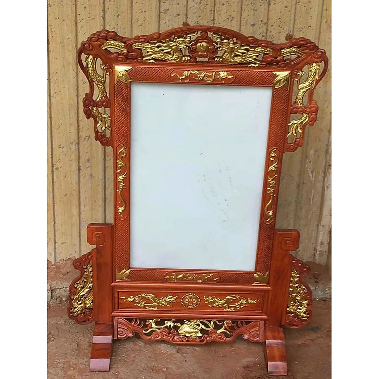 Khung ảnh thờ cúng bằng gỗ gõ đỏ và được dát vàng kt lồng ảnh 21×31cm