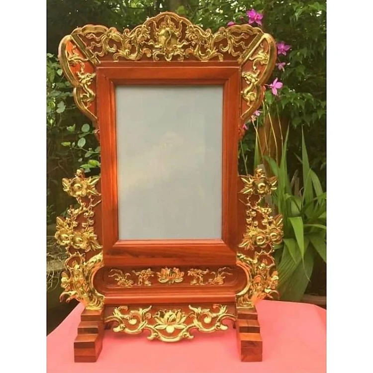 Khung ảnh thờ, hoa mai dát vàng PMTT3