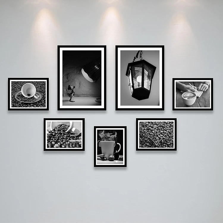 Khung Ảnh Treo Tường Trang Trí Quán Cafe (Cà Phê) Phong Cách Trắng Đen, Vintage Tặng Kèm bộ ảnh như hình mẫu, đinh treo tranh và sơ đồ treo - PGC289