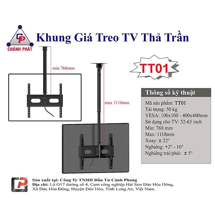 Khung giá treo tivi thả trần kích thước từ 32- 65 inch hàng Chánh Phát - Hàng Chính Hãng