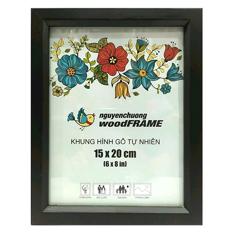 Khung Hình Gỗ Tự Nhiên 15 x 20 cm - Khung Đen