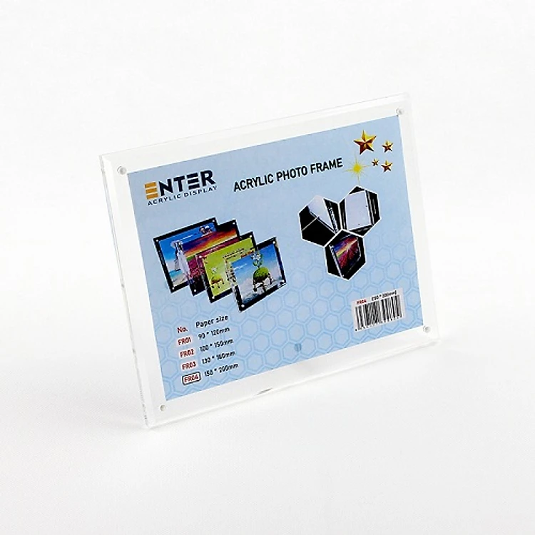 Khung hình mica cao cấp Enter FR04 150x200mm mica 5mmx2, Khung ảnh để bàn chân inox, Khung bằng khen