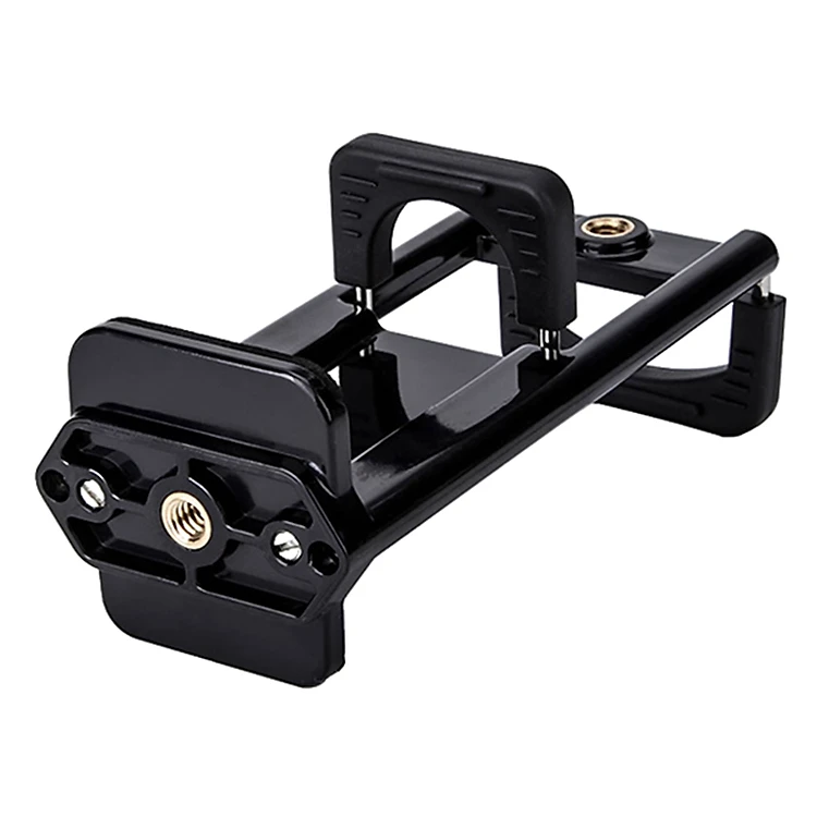 - Ren của khung kẹp máy tính bảng lên chân có chuẩn ren các chân máy ảnh lớn nhỏ nên có thể gắn lên các chân. Chất liệu chính là nhựa ABS và kim loại, ngàm giữ máy dài nên bám chắc chắn không bị trượt.