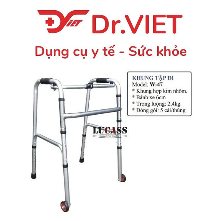 KHUNG TẬP ĐI HỢP KIM NHÔM LUCASS W-47 Giúp cho người tập đi sau tai nạn, tai biến - Giúp cho người già đi lại vững vàng hơn