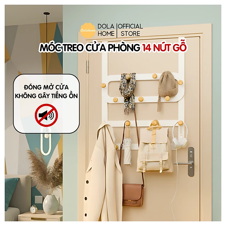 Giá treo đồ kim loại cao cấp 14 nút móc cửa - không cần khoan tường