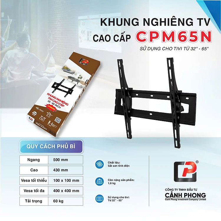 Khung treo tivi cố định Cảnh Phong dạng mâm CPM65N (32 - 65 inch) - Hàng chính hãng