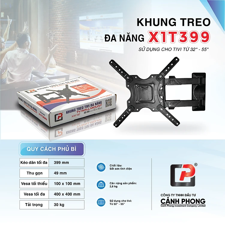 Khung treo tivi đa năng CP xoay mọi góc độ kích thước từ 32-55 inch X1T399 - Hàng Chính Hãng