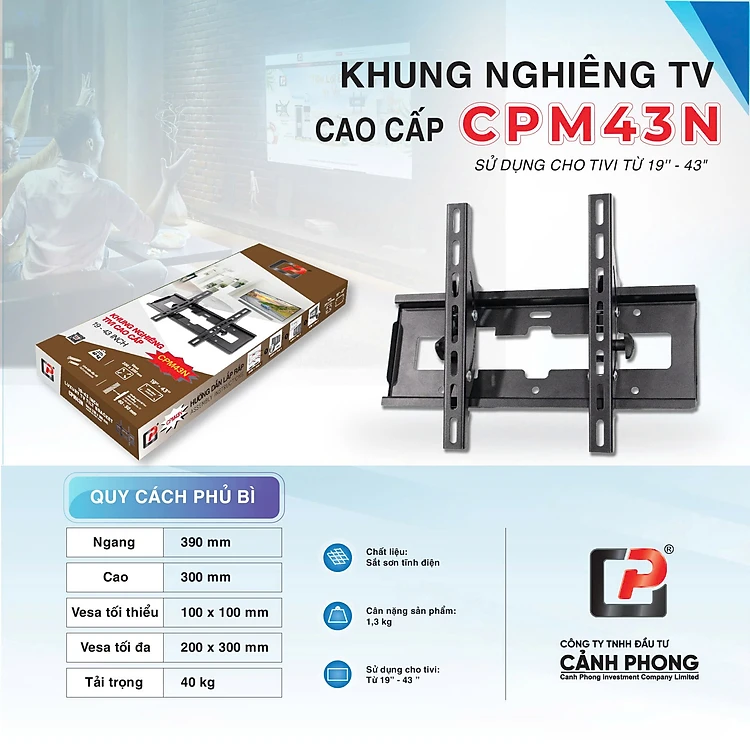 Khung treo tivi mâm áp tường 19 - 42 inch CPM43N - Hàng chính hãng