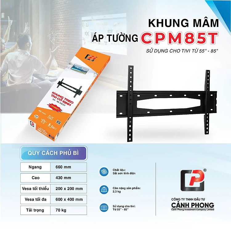 Khung treo tivi mâm áp tường 66 - 85 inch CPM85T - Hàng chính hãng