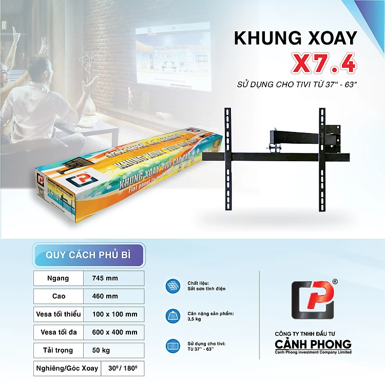 Khung Treo TiVi Xoay Cảnh Phong từ 37 - 63 inch X7.4 - Hàng Chính Hãng