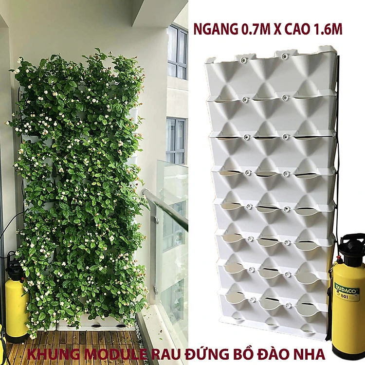 Khung Vườn Đứng Cây Ban Công (Bộ 8 tầng Module Vertical + 1 Tray nước nhập khẩu Bồ Đào Nha (không kèm tưới) dùng trồng cây xanh treo tường dạng đứng