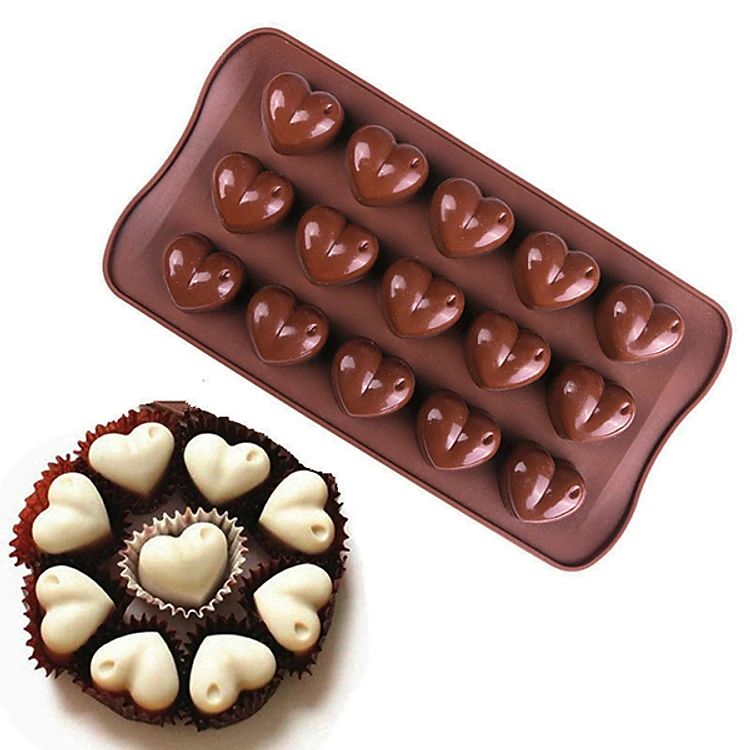 Khuôn silicon làm thạch rau câu, socola 15 trái tim giọt nước