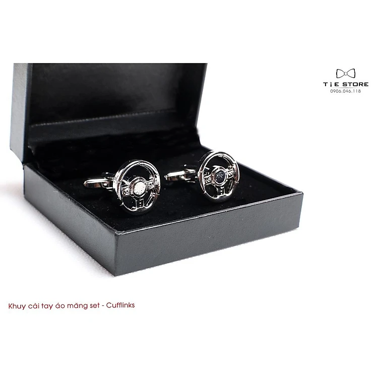 Khuy Cài tay áo Măng Set cao cấp đính đá - cufflinks , tặng kèm hộp nhỏ, hình vô lăng