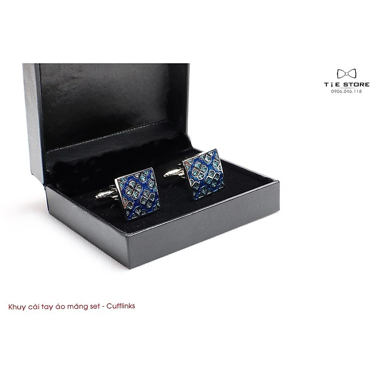 Khuy Cài tay áo Măng Set cao cấp đính đá - cufflinks , tặng kèm hộp nhỏ, xanh họa tiết cổ