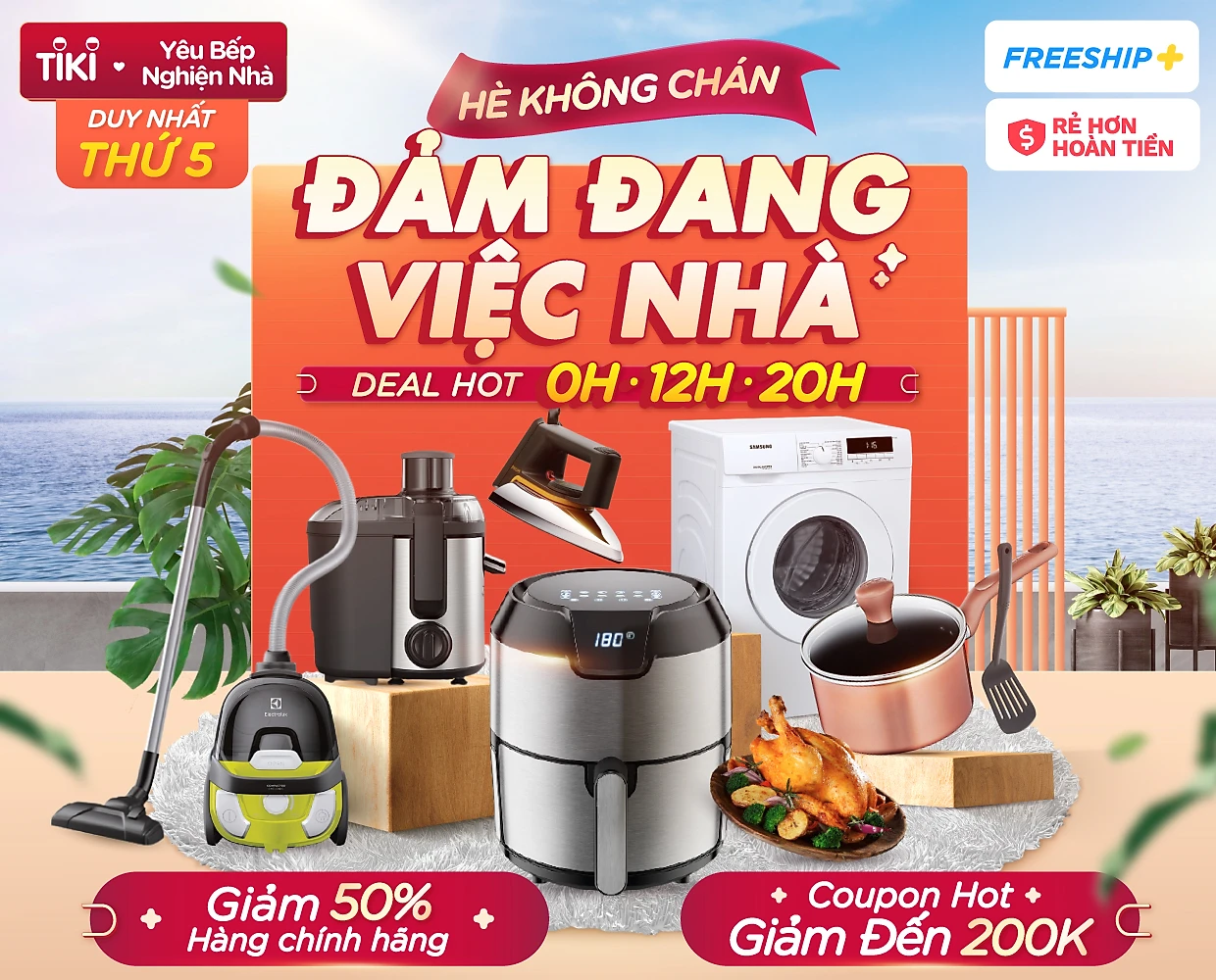 - Thời gian diễn ra: THỨ 5 hàng tuần (03/06, 10/06, 17/06, 24/06) - Công bố kết quả vào tuần kế tiếp - Đối tượng tham gia: dành cho Hội viên Yêu Bếp Nghiện Nhà - Thể lệ: Hội viên có đơn hàng nhiều nhất trên TIKI (tính từ THỨ 5 hàng tuần đến THỨ 4 tuần kế tiếp. Chỉ áp dụng cho đơn hàng có sản phẩm thuộc ngành hàng: Nhà cửa - Đời sống, Điện Gia Dụng, Điện Tử - Điện Lạnh, Tivi) *** Mỗi hội viên chỉ được nhận tối đa 1 phần quà trong suốt chương trình *** - Cách thức tham gia: Bước 1: Đăng ký hội viên của Yêu Bếp Nghiện Nhà (nếu chưa là hội viên) Bước 2: Mua hàng trên trang Yêu Bếp Nghiện Nhà Bước 3: Đón chờ kết quả tại trang Yêu Bếp vào thứ 5 hàng tuần