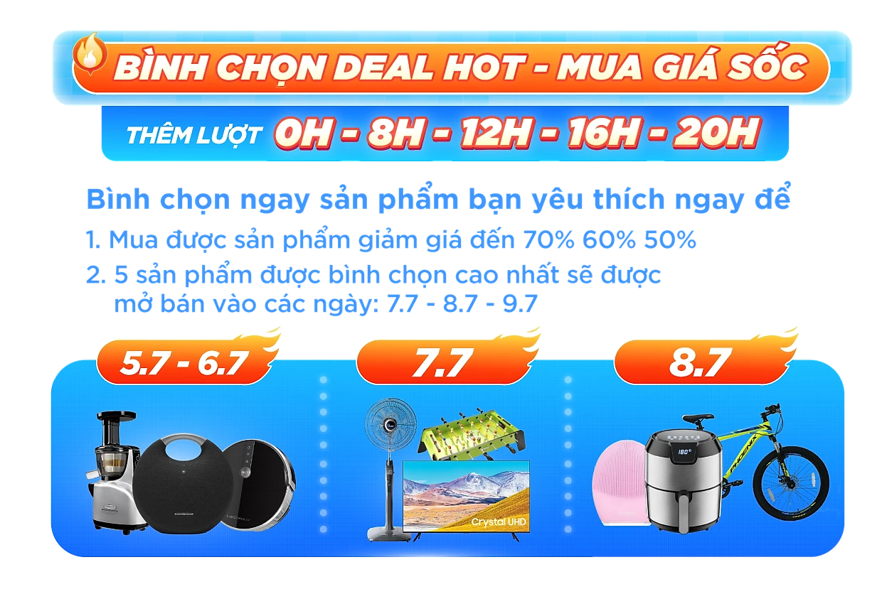 Mỗi khách hàng chỉ được mua số lượng tối đa là 1 trên mỗi sản phẩm giá Sốc khác nhau. Số lượng sản phẩm Sốc có hạn. Sản phẩm sẽ trở về giá cũ khi hết số lượng deal Sốc