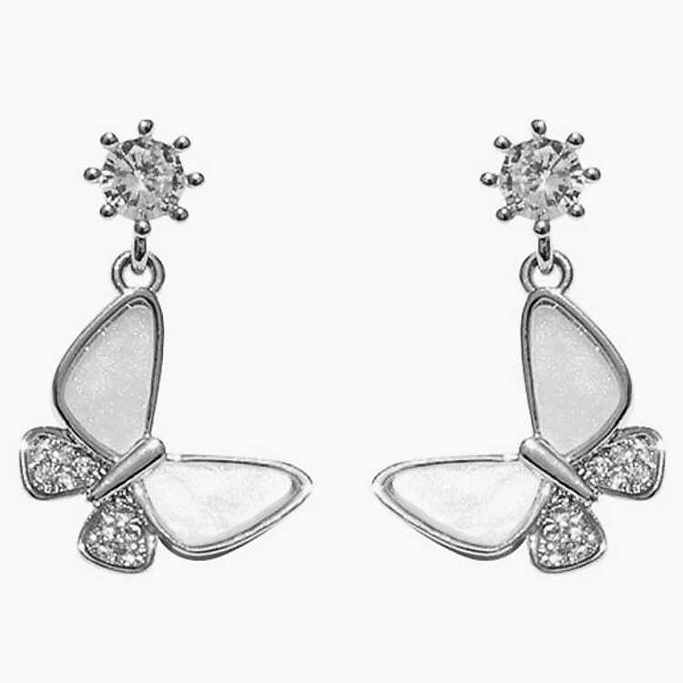 Khuyên tai bạc 925 nụ đá treo hình bướm khảm trai mới lạ duyên dáng long lanh đáng yêu dễ thương Dế Bạc - K5963