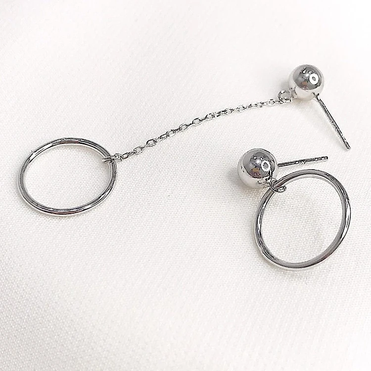Khuyên tai bạc 925 nụ minidot thả xích tròn rỗng cá tính trẻ trung độc đáo lạ mắt nổi bật Dế Bạc - K5259
