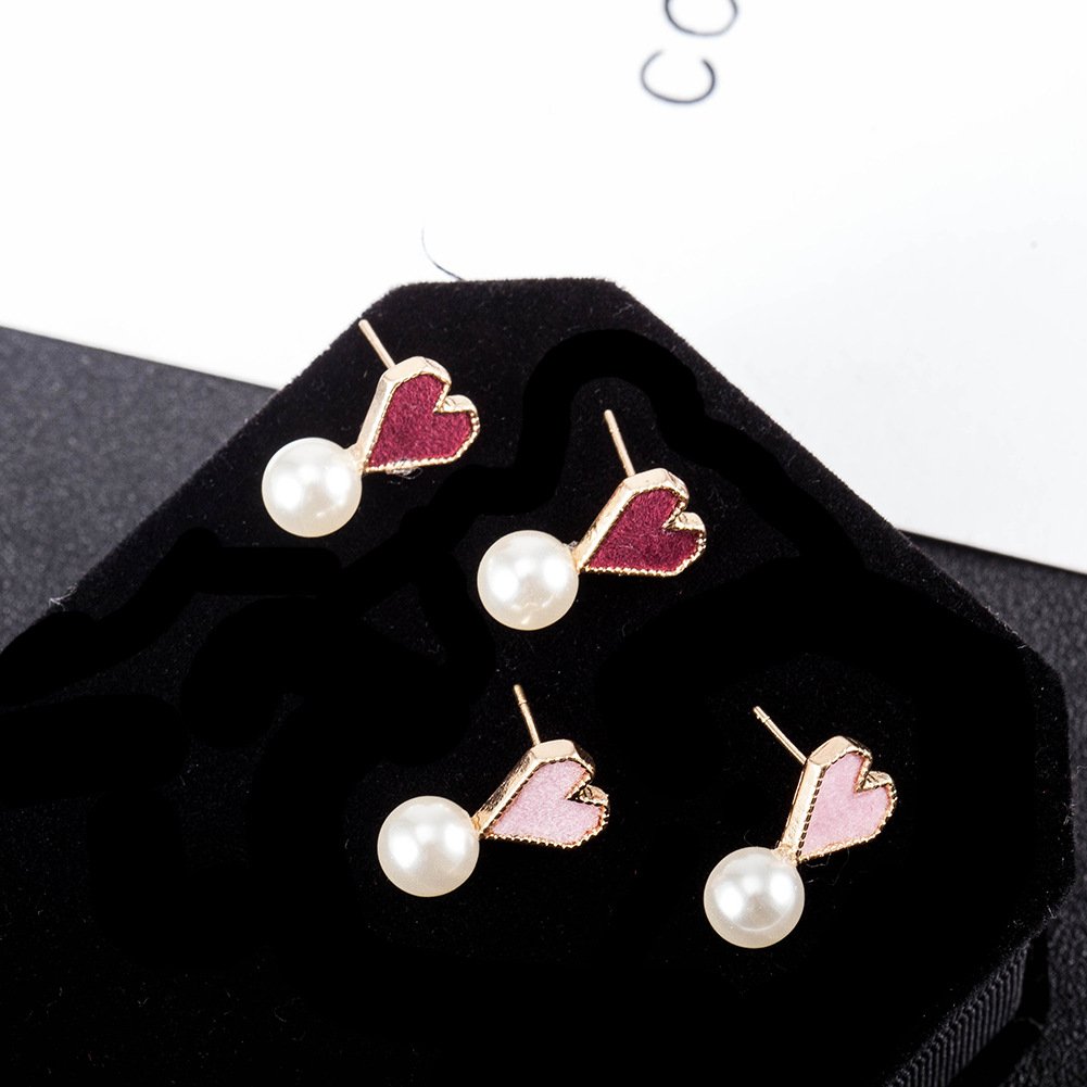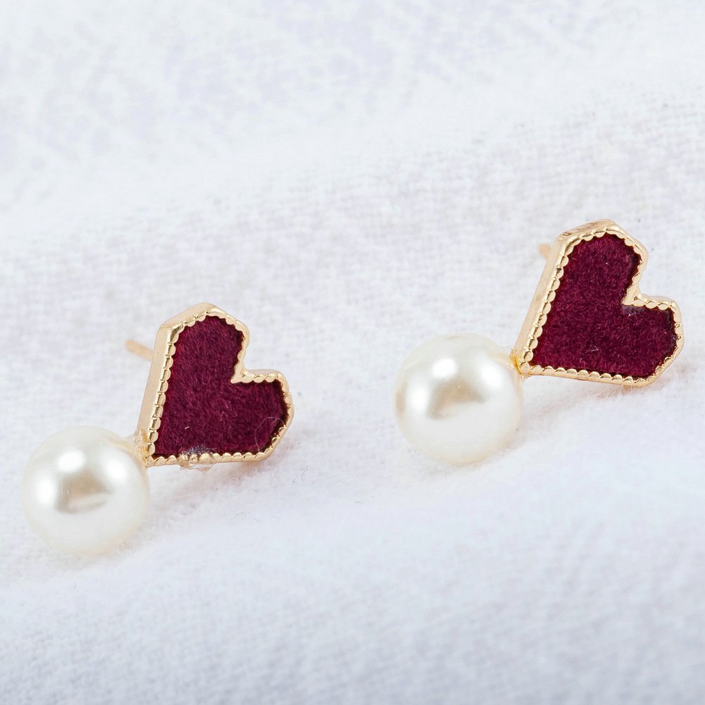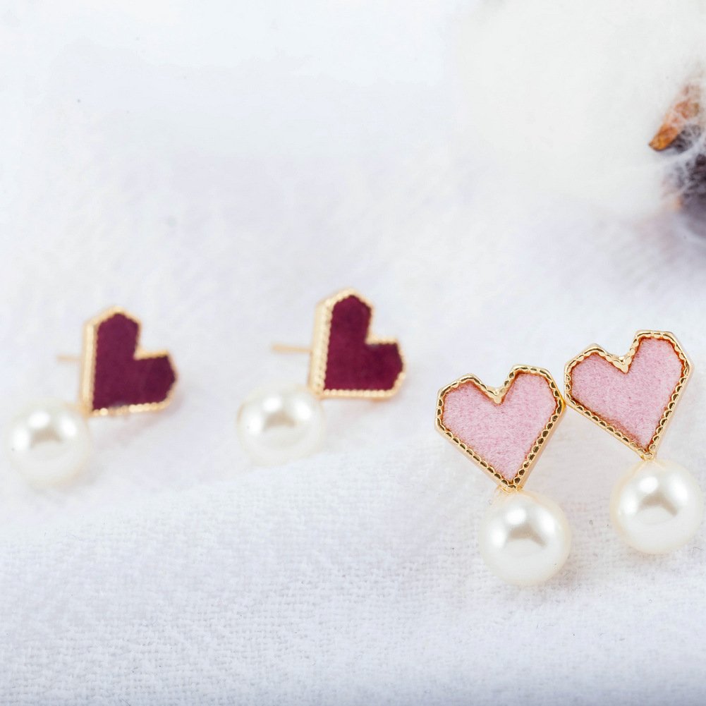 Khuyên tai đính đá TRÁI TIM GẮN NGỌC bông tai nữ phong cách Hàn Quốc
