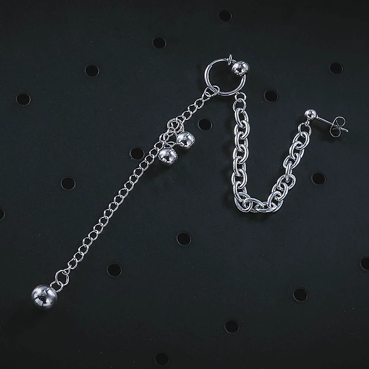 Khuyên tai unisex hai chỗ đeo xích bi năng động