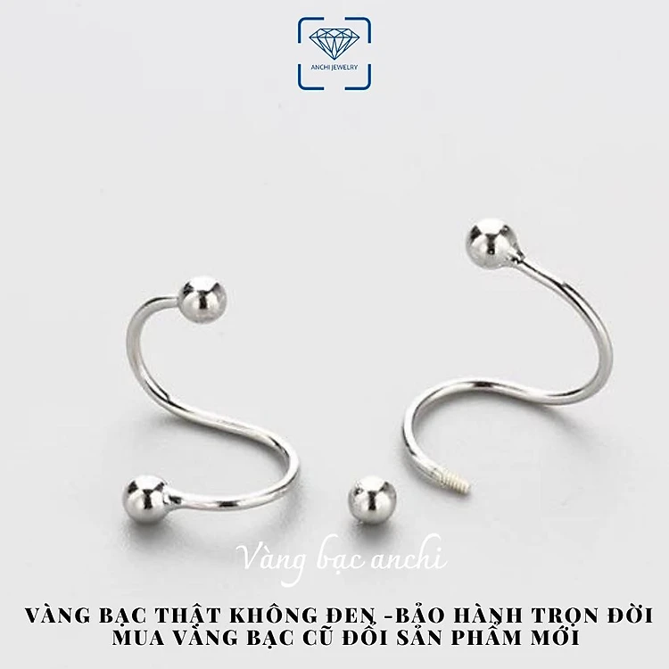 Khuyên tai xoắn ốc ôm vành 2 đầu bi tròn, bông tai bạc nam/ nữ unisex cá tính, Anchi jewelry