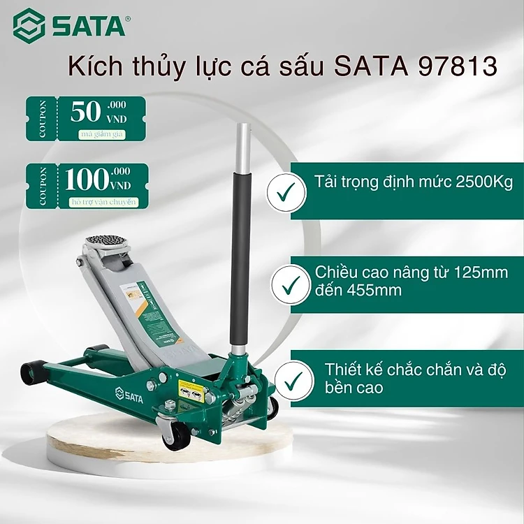 Kích thủy lực cá sấu 2.5 tấn SATA 97813 Dùng Để Nâng Các Vật Nặng, Kích gầm Ô Tô - Hàng Chính Hãng