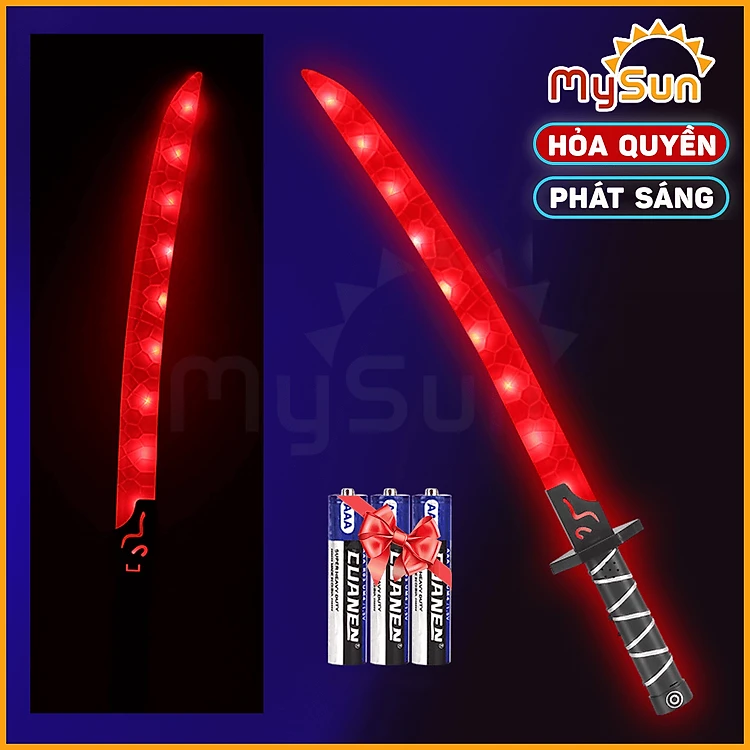 Kiếm Katana Nhật nhựa phát ánh sáng đồ chơi Samurai mini giá rẻ như thật cho bé trai tặng PIN MySun